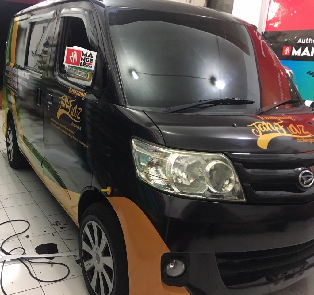 Tempat Pasang Branding Stiker Mobil keren harga terbaik. 3M Graphic film anti gores premium, cutting sticker desain terbaru. Mangele.
